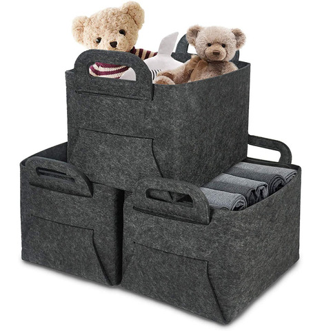 3 크기 세트 스토리지 바구니 선반 낮은 스토리지 빈 사각형 펠트 패브릭 바구니 스토리지 보관함 주최자