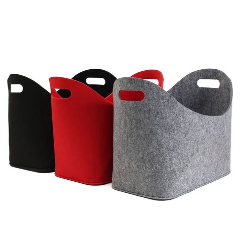 대형 장작 바구니 보관 펠트 가방 쇼핑 바구니 회색 잡지 랙 바구니 손잡이가있는 보육 보관함