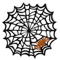 4 라운드 할로윈 펠트 플레이스매트 블랙 스파이더 웹 플레이스매트 할로윈 장식용 오렌지 스파이더와 13.5 인치 세트
