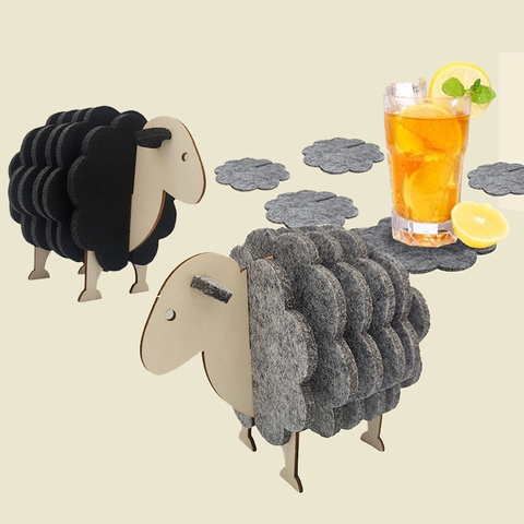 6 Pcs 양 펠트 코스터 홀더 펠트 울 코스터 흡수성 음료 양고기 컵 코스터 울 선물 장식